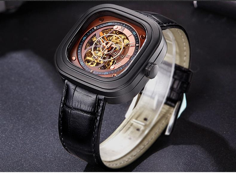 On-time Delivery: If you do not receive your purchase within 60 days, you can ask for a full refund before order completion (when you click "Confirm Order Received" or exceed confirmation timeframe).15008 Burei Gold Japan Excellent Ladies Sapphire Miyota New Seven Skeleton Watch Geneva Self-wind Square Mirror Calfskin Switzerland